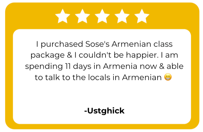 Now you can realize your dream of visiting Armenia, speaking with your Armenian friend, and understanding the country's culture because now you are no longer afraid of not being understood by the local people!